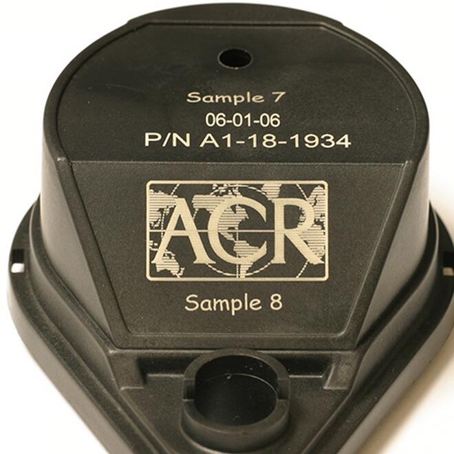 Black delrin is truly an ideal plastic for showcasing the capabilities of a laser marking system.